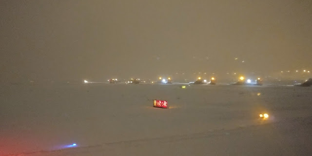 If I look tired in the above photographs, it's because I was. I barely slept 3 hours the night before. I drove to the airport at around 4:30am to catch my 8am flight. There was snow in the forecast. I could see small flakes starting to fall as I walked into the airport, but I didn't give it much thought because I would be out of there soon.